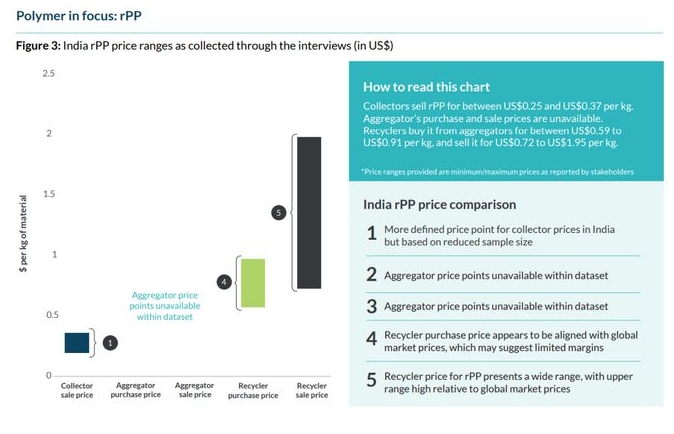 以上圖表是印度再生塑料供應鏈的價格,報告中還包含印度尼西亞、泰國和越南的數(shù)據(jù)價格及分析。